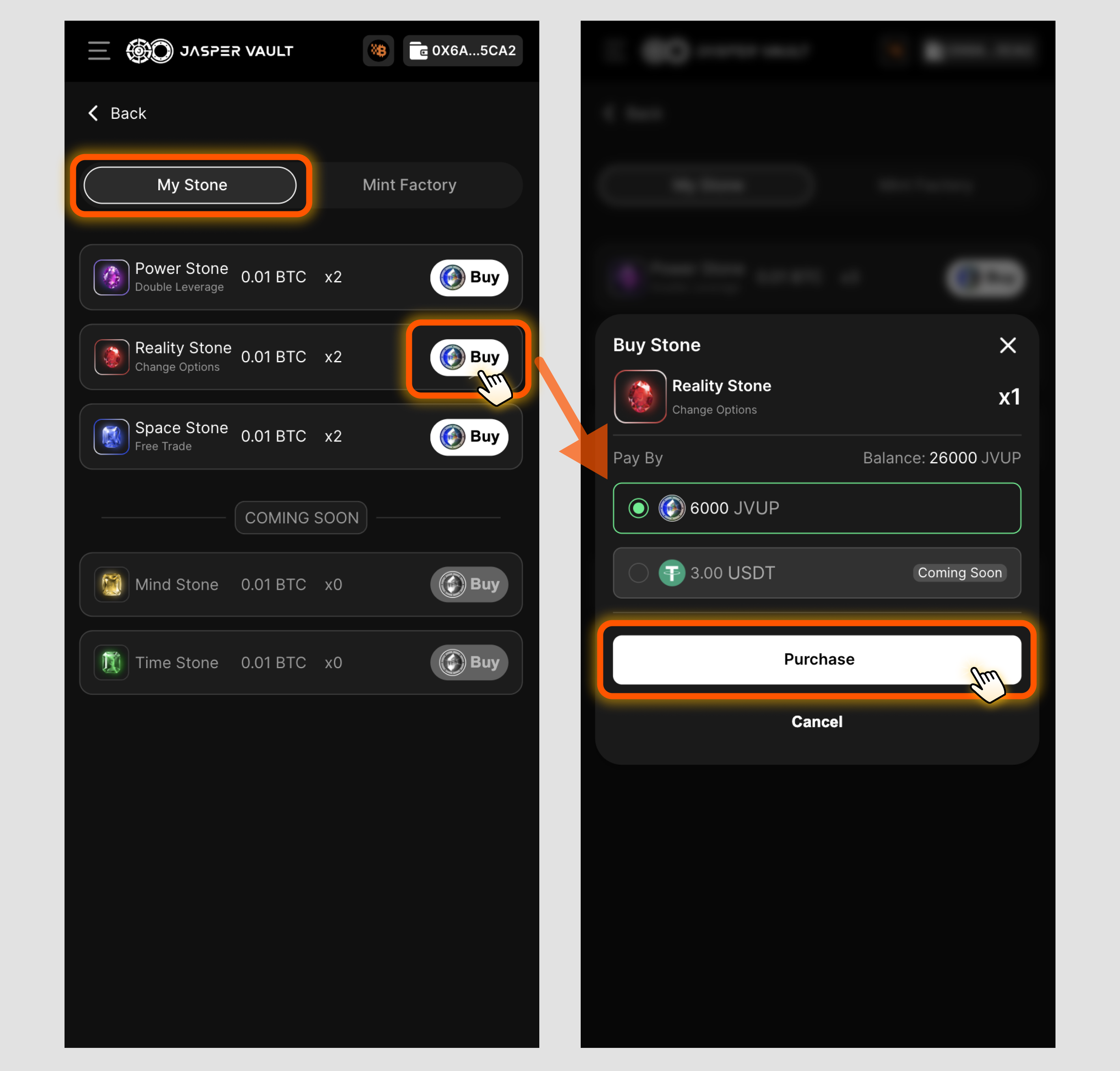 * Community Tasks: You can also buy a Reality Stone with 6,000 JVUP. JVUP can be earned through seasonal red packets distributed on our social media channels (TG, Discord, X).